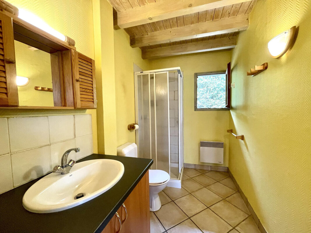 1er étage : séjour avec cheminée, balcon et terrasses, cuisine, chambre, salle d’eau avec WC.