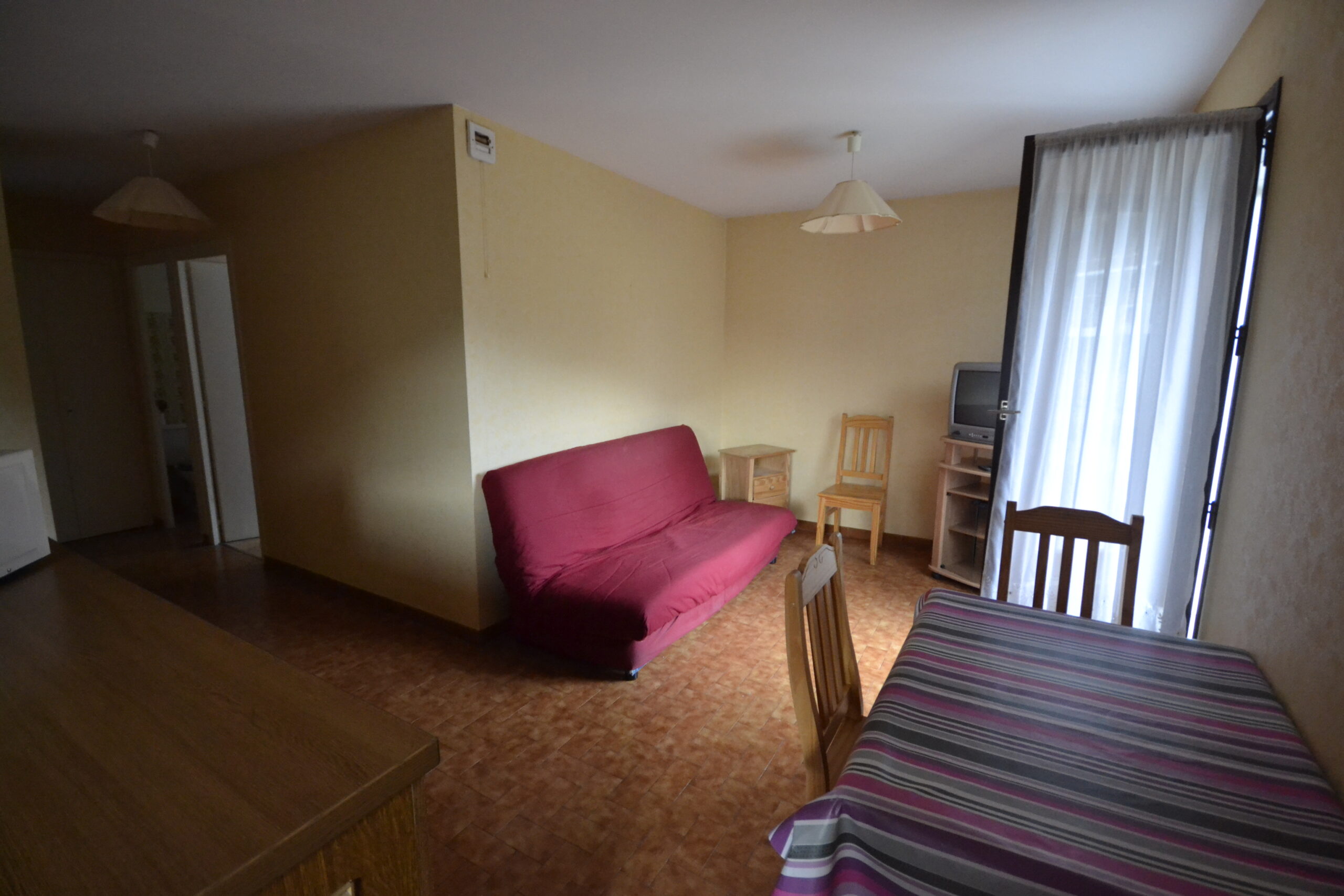Appartement de type 2 meublé situé au rez-de-chaussée d'une résidence à deux pas du centre ville de Thônes.